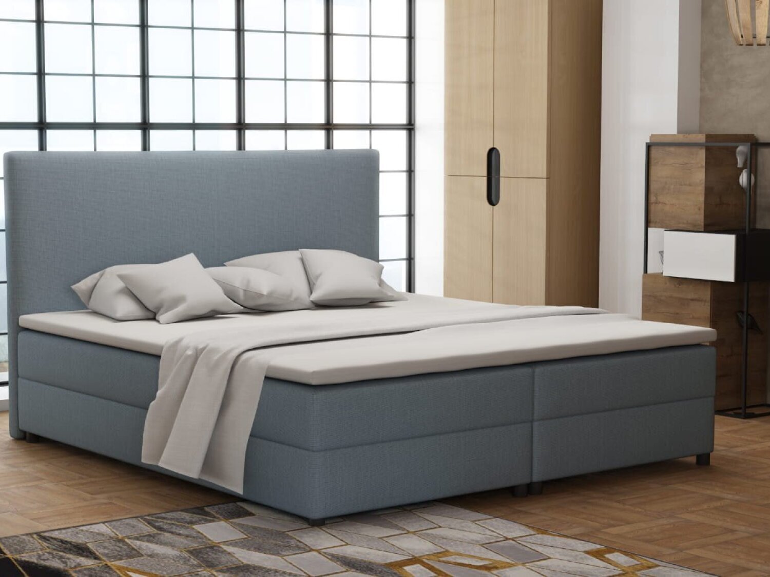 Stilvolles Boxspringbett mit hohem, glattem Kopfteil, in drei Größen erhältlich: