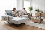 Der Gravity Z2 ist ein modernes Ecksofa im industriellen Loft-Stil. Die massiven Formen werden durch die hohen, schlanken Kufenfüße aus Metall und Kunststoff optisch aufgelockert. Dadurch wirkt das Sofa trotz seiner Größe leicht und elegant.