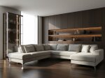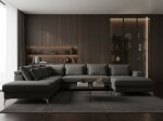 Im Modell Oded sind die Kissen mit natürlichen Federn gefüllt, wodurch beim Hinsetzen ein Gefühl von angenehmer Umhüllung und einem entspannten „Einsinken“ in das Sofa entsteht. Das Möbel verfügt über eine großzügige Schlaffunktion sowie über Module mit Bettkasten, die mit Automatikmechanismen ausgestattet sind und das Öffnen erleichtern.