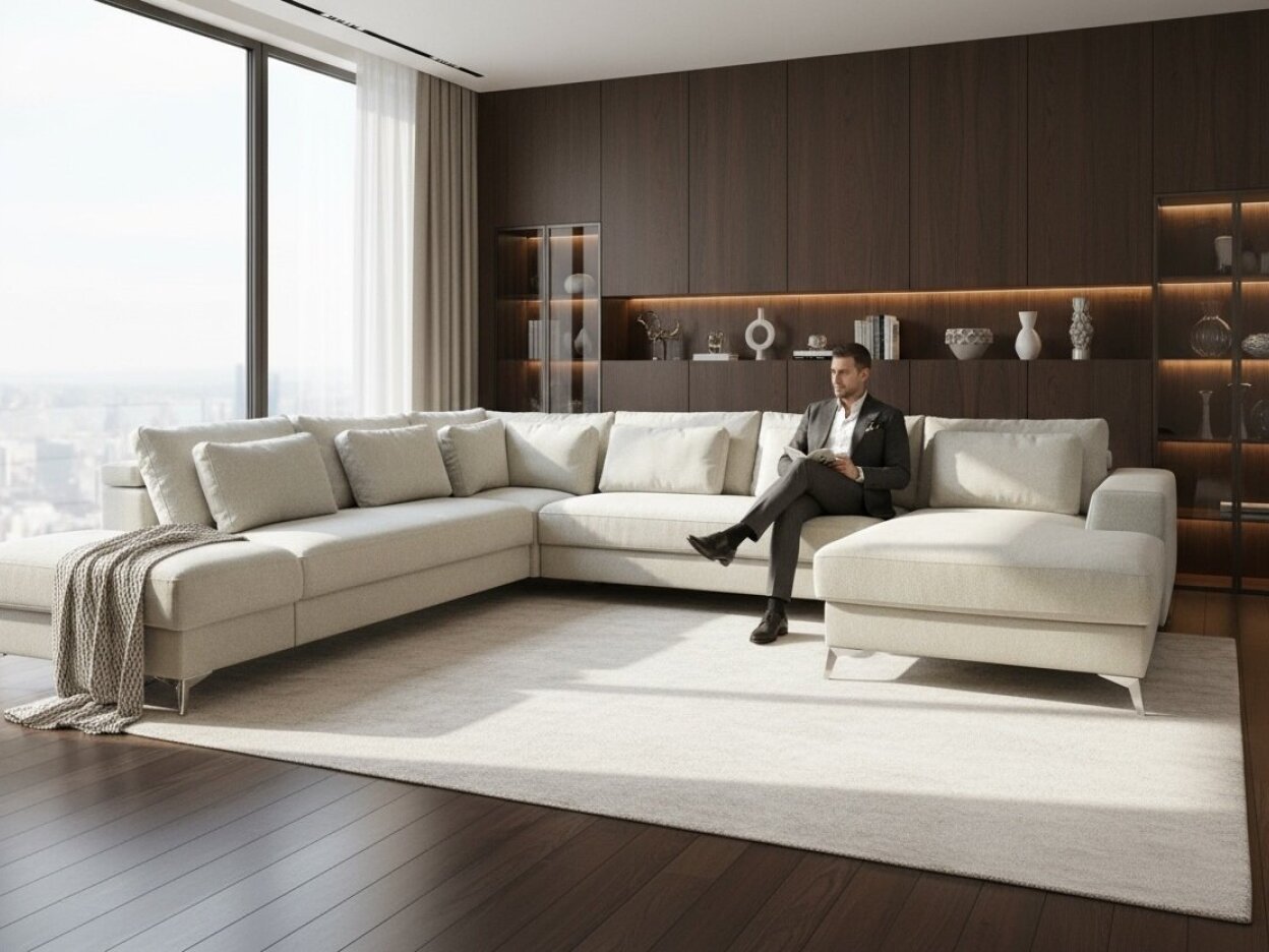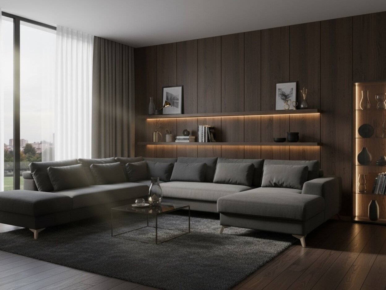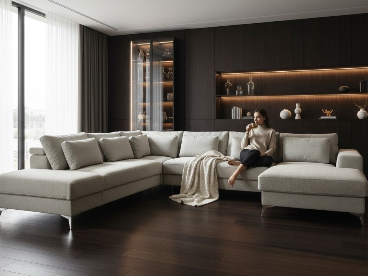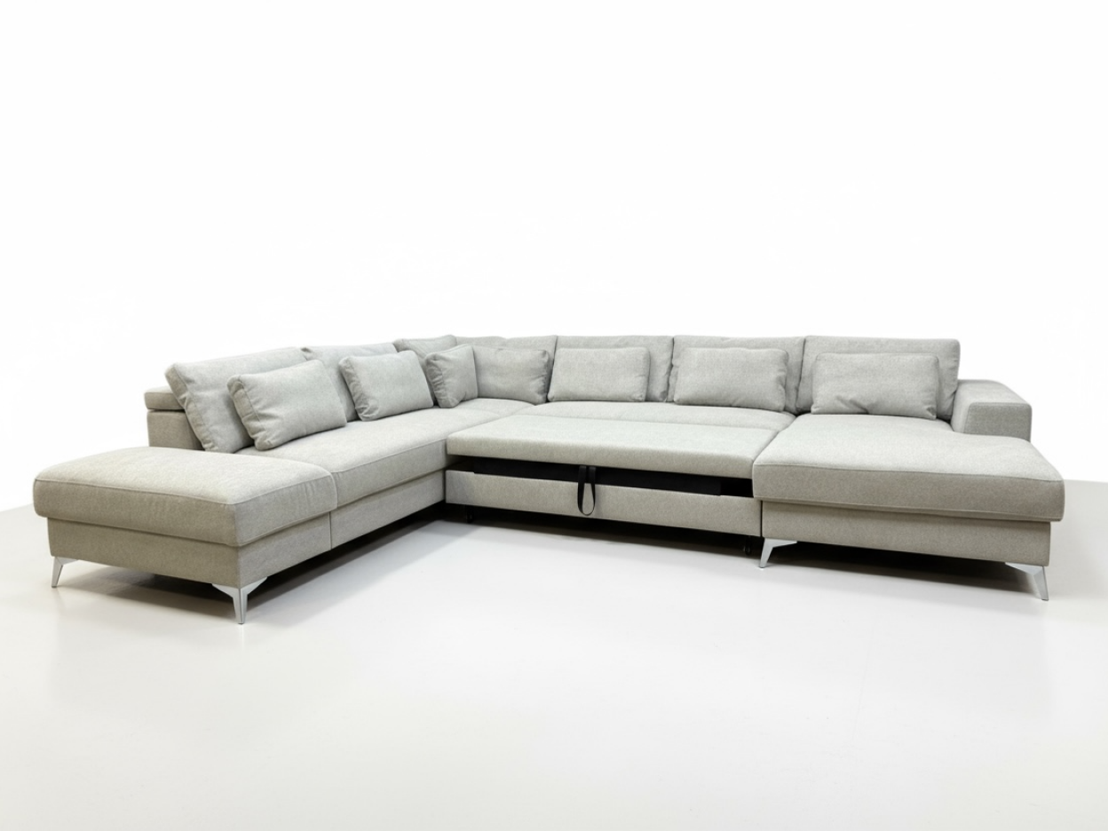 Im Modell Oded sind die Kissen mit natürlichen Federn gefüllt, wodurch beim Hinsetzen ein Gefühl von angenehmer Umhüllung und einem entspannten „Einsinken“ in das Sofa entsteht. Das Möbel verfügt über eine großzügige Schlaffunktion sowie über Module mit Bettkasten, die mit Automatikmechanismen ausgestattet sind und das Öffnen erleichtern.