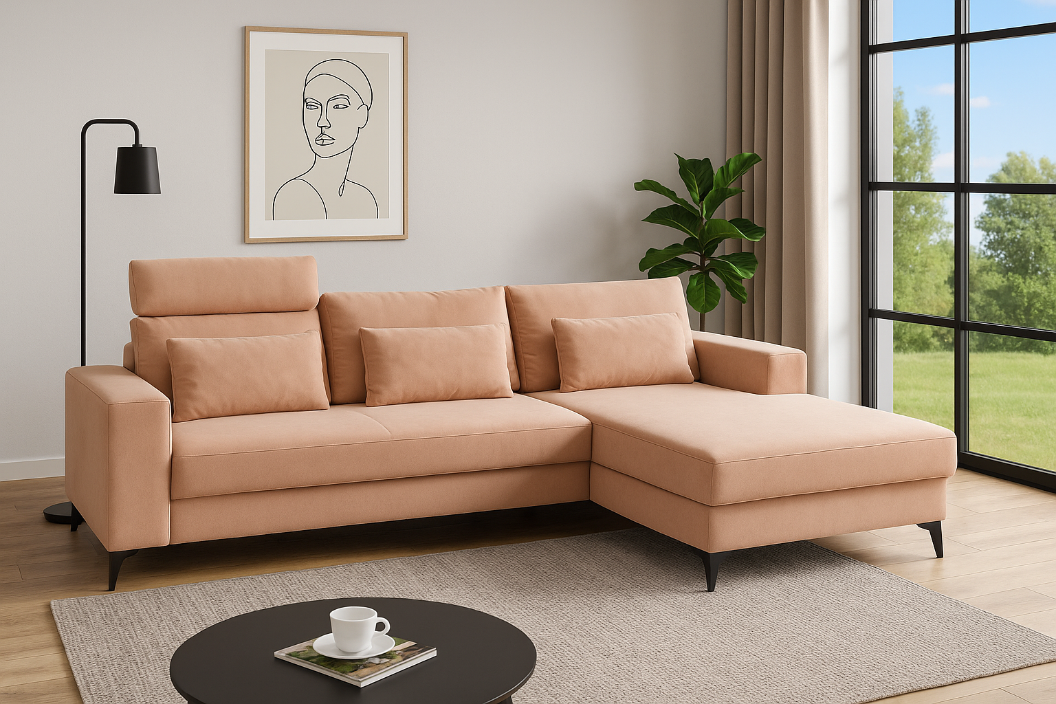 ODED Z1 Ecksofa mit Kopfstützen & Daunenkissen (282 x 225 cm)