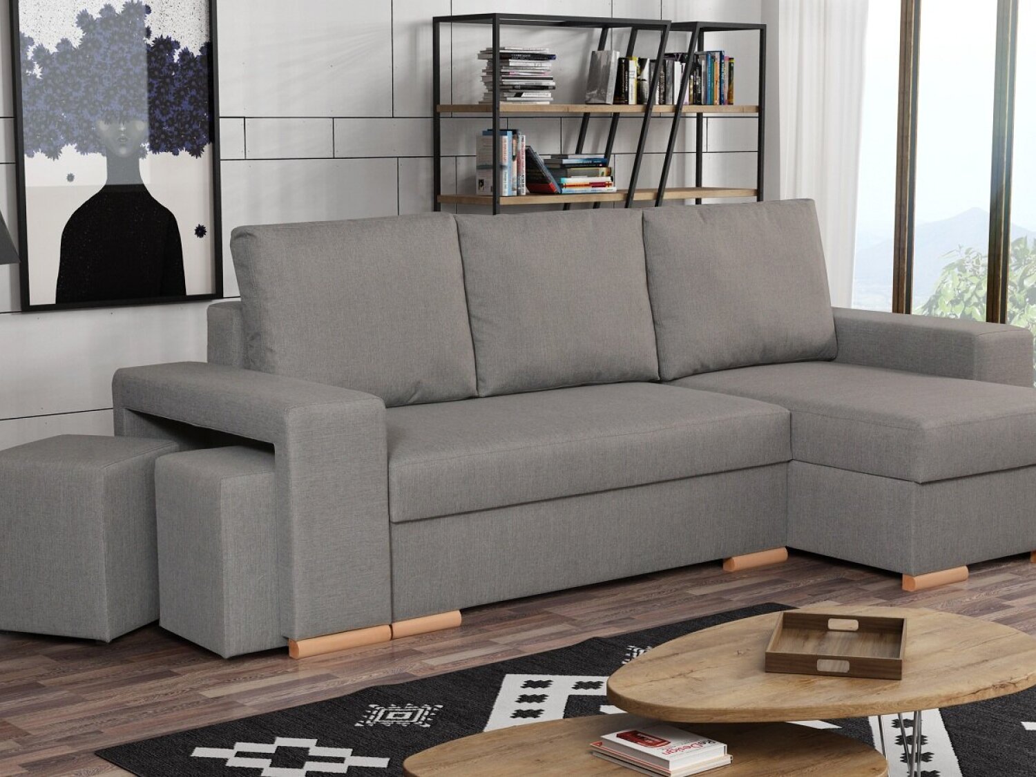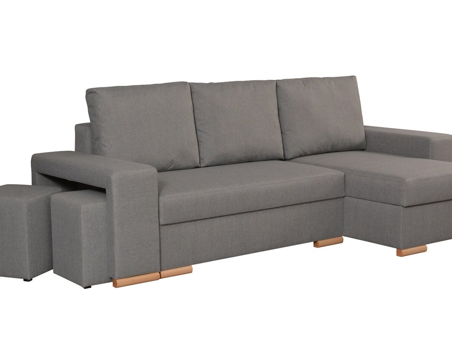 • Armlehne mit eingebauten Hockern und Ablage – praktisch und funktional.